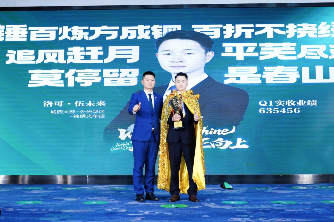 苦心不负,2026年第一季度,外光华区一举拿下收入完成率、新房完成率、行指完成率三项第一,240位伙伴的热血与付出,终于让老牌大区重回巅峰。此外,贺成玉麾下的商圈经理家乐也斩获新房先锋门店第一、百星门店第二双项殊荣;而大区的新房经纪人洛可更是第一次以新房经纪人第一名的身份登上领奖台,接受荣誉加冕。更惊喜的是,在一季度盛典上,贺成玉与家乐搭档完成了主持首秀,为全员的高光时刻再添璀璨一笔。